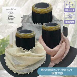 首元のUV対策を華やかに演出する、接触冷感機能付きのチュールラメネックスカーフ。